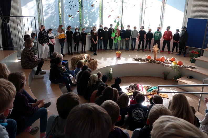 Dafür hatten die Kinder wie früher passende Herbst-Beiträge vorbereitet: Gedichte, Texte, Lieder, Raps, Tänze oder Theaterstücke. Und endlich konnten die Kinder wieder dieses tolle Gefühl des großen Applauses im Forum erleben – die Kinder des ersten Schuljahres und im Grunde auch des zweiten Schuljahres zum ersten Mal.
