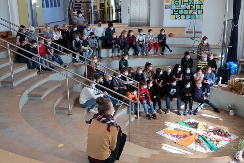 Dafür hatten die Kinder wie früher passende Herbst-Beiträge vorbereitet: Gedichte, Texte, Lieder, Raps, Tänze oder Theaterstücke. Und endlich konnten die Kinder wieder dieses tolle Gefühl des großen Applauses im Forum erleben – die Kinder des ersten Schuljahres und im Grunde auch des zweiten Schuljahres zum ersten Mal.