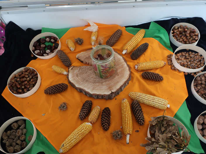 Freitag, 29.09.23, unser Herbstfest wie früher! Nach einem Frühstück mit den Eltern in den Klassen feierten wir im Forum ab 11:00 Uhr das Herbstfest, vorbereitet und gestaltet von den Klassen 1 und 4 und endlich wieder mit vollem Haus – wie die Bilder unten zeigen!