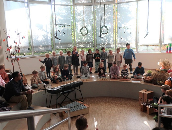 Das einstündige Programm hatten die Klassen 4 und 1 vorbereitet. Für die Erstis ein besonders spannender Moment, da sie zum ersten Mal auf der großen Bühne im Forum standen. Und das Forum war richtig voll, denn vor dem Herbstfest waren viele Eltern bereits zum Ernte-Dank-Frühstück in die Klassen gekommen. Danke für die Unterstützung dabei!