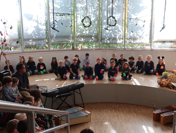 Das einstündige Programm hatten die Klassen 4 und 1 vorbereitet. Für die Erstis ein besonders spannender Moment, da sie zum ersten Mal auf der großen Bühne im Forum standen. Und das Forum war richtig voll, denn vor dem Herbstfest waren viele Eltern bereits zum Ernte-Dank-Frühstück in die Klassen gekommen. Danke für die Unterstützung dabei!