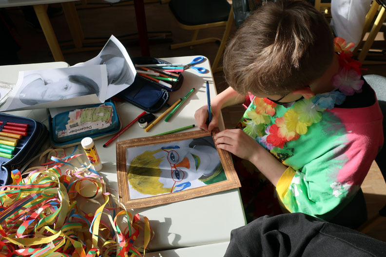 Das Feiern war beschränkt auf die eigene Klasse. Die Foto-Galerie zeigt aber, dass die Kinder das Feiern trotzdem sehr genossen haben. Und daruf ein dreifaches „Mosaik-Schule – Helau!“