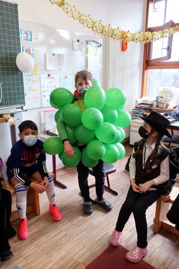 Das Feiern war beschränkt auf die eigene Klasse. Die Foto-Galerie zeigt aber, dass die Kinder das Feiern trotzdem sehr genossen haben. Und daruf ein dreifaches „Mosaik-Schule – Helau!“