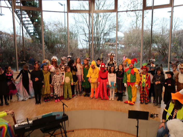 • erst im Forum mit einer Aufführung der Lehrkräfte und danach mit unseren Karnevalsliedern