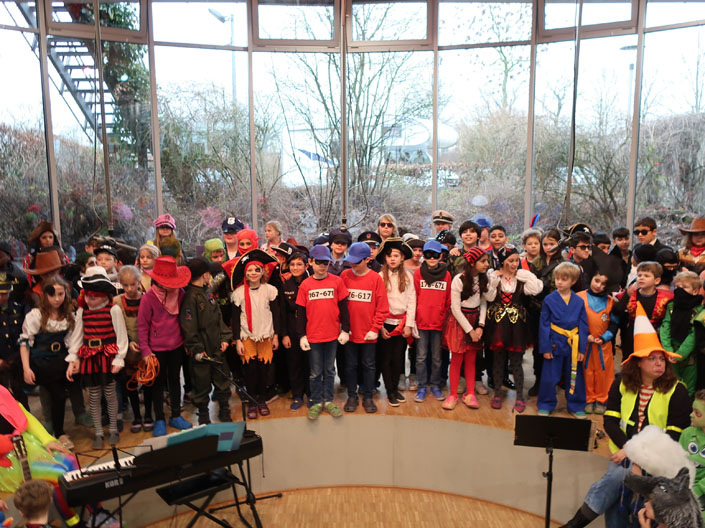 - erst im Forum mit einer Aufführung der Lehrkräfte und danach mit unseren Karnevalsliedern