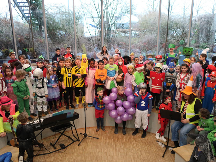 Freitag, der 17.02.23, konnten wir wie früher Karnval mit allen Kindern zusammen feiern: