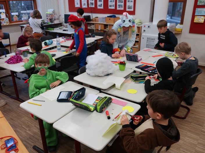- danach in den Klassen – unterbrochen von einem Buffet, für das die Eltern den Kindern Leckereien mitgegeben haben (Großes Dankeschön!)