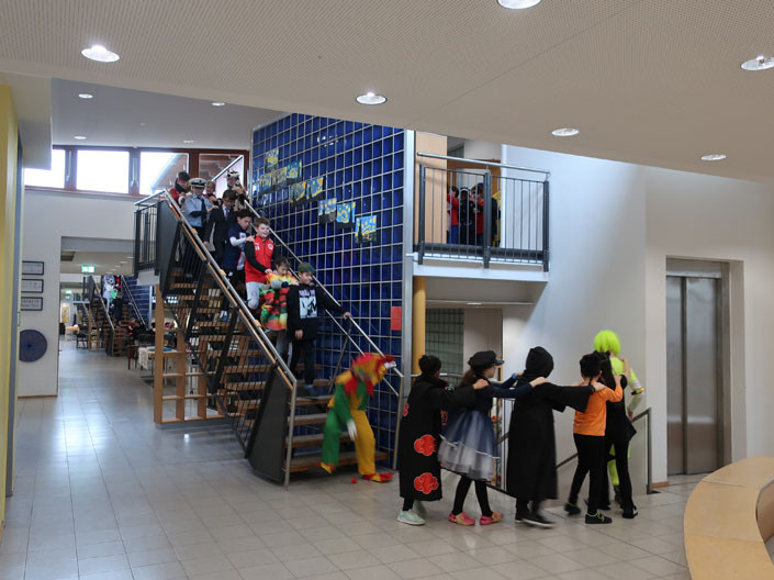 • erst im Forum mit einer Aufführung der Lehrkräfte und danach mit unseren Karnevalsliedern