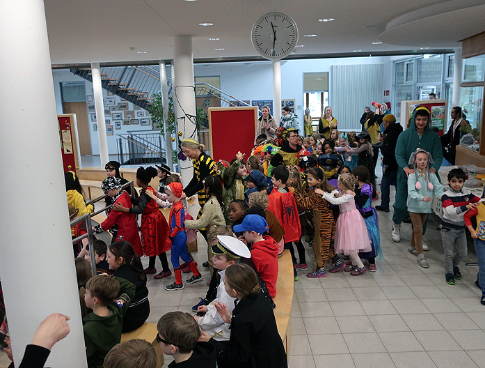 Danach feierten alle zusammen im Forum mit Karnevalsliedern, dem Feiern der tollen Kostüme und natürlich immer wieder mit der Mosaik-Rakete mit 4 Stufen: Mosaik-Schule, helau! Im Anschluss ging das Feiern in den Klassen weiter. Dazu mehr in der Foto-Galerie!