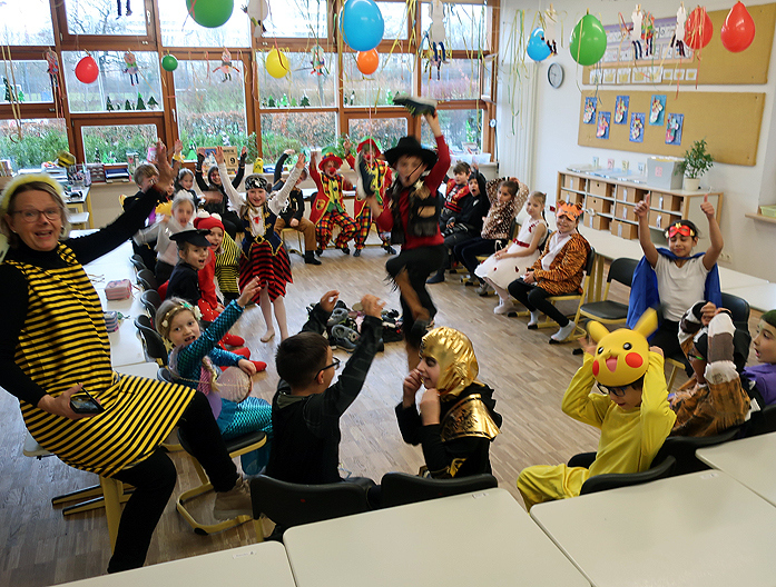 Danach feierten alle zusammen im Forum mit Karnevalsliedern, dem Feiern der tollen Kostüme und natürlich immer wieder mit der Mosaik-Rakete mit 4 Stufen: Mosaik-Schule, helau! Im Anschluss ging das Feiern in den Klassen weiter. Dazu mehr in der Foto-Galerie!