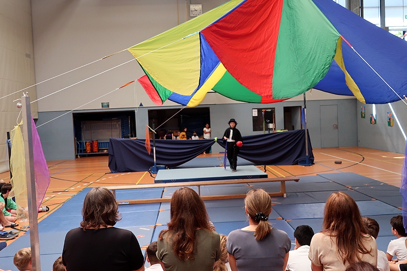 Leider mussten wir dieses Jahr wegen Corona im März unseren Schulzirkus absagen und auf den April 2023 verschieben. Damit unsere Viertklässler aber auch Zirkus-Luft schnuppern dürfen, haben die Lehrerinnen des 4. Jahrgangs zusammen mit Mitarbeiterinnen von „Musifratz“ ab dem 30.05.22 eine Projektwoche organisiert. Jeden Tag probten die Kinder in verschiedenen Kleingruppen. Am Freitag, den 03.06.22, konnten die Kinder dann ihr Können als Clowns, Jongleure, Akrobaten, Raubtiere, Tänzer, Pantominen, Schauspieler und Kampfkünstler bei einer Zirkusvorstellung in der Turnhalle vor den Eltern aufführen. Und der Applaus zeigte, dass das mehr als nur eine Ersatz-Zirkus-Vorstellung war. Danke allen Beteiligten für den tollen Einsatz!