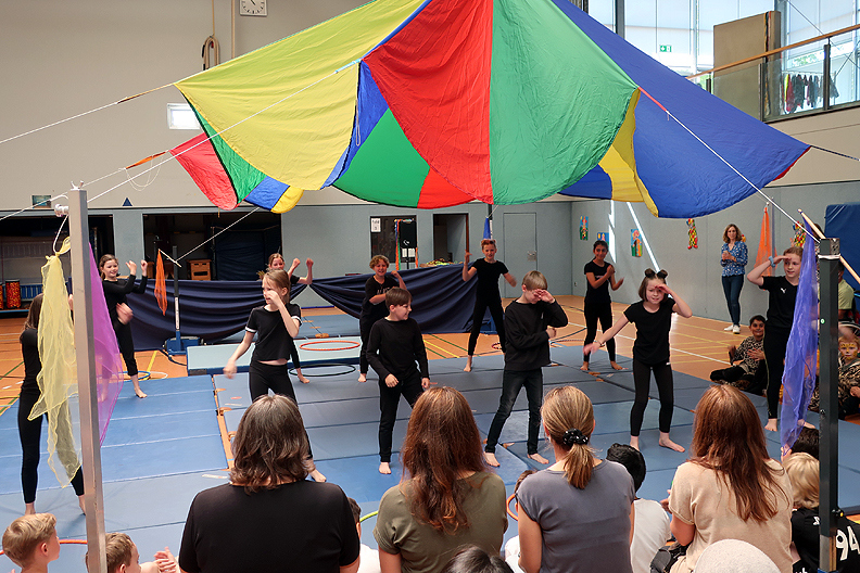 Leider mussten wir dieses Jahr wegen Corona im März unseren Schulzirkus absagen und auf den April 2023 verschieben. Damit unsere Viertklässler aber auch Zirkus-Luft schnuppern dürfen, haben die Lehrerinnen des 4. Jahrgangs zusammen mit Mitarbeiterinnen von „Musifratz“ ab dem 30.05.22 eine Projektwoche organisiert. Jeden Tag probten die Kinder in verschiedenen Kleingruppen. Am Freitag, den 03.06.22, konnten die Kinder dann ihr Können als Clowns, Jongleure, Akrobaten, Raubtiere, Tänzer, Pantominen, Schauspieler und Kampfkünstler bei einer Zirkusvorstellung in der Turnhalle vor den Eltern aufführen. Und der Applaus zeigte, dass das mehr als nur eine Ersatz-Zirkus-Vorstellung war. Danke allen Beteiligten für den tollen Einsatz!