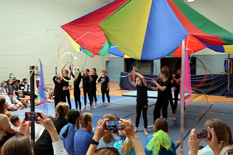 Leider mussten wir dieses Jahr wegen Corona im März unseren Schulzirkus absagen und auf den April 2023 verschieben. Damit unsere Viertklässler aber auch Zirkus-Luft schnuppern dürfen, haben die Lehrerinnen des 4. Jahrgangs zusammen mit Mitarbeiterinnen von „Musifratz“ ab dem 30.05.22 eine Projektwoche organisiert. Jeden Tag probten die Kinder in verschiedenen Kleingruppen. Am Freitag, den 03.06.22, konnten die Kinder dann ihr Können als Clowns, Jongleure, Akrobaten, Raubtiere, Tänzer, Pantominen, Schauspieler und Kampfkünstler bei einer Zirkusvorstellung in der Turnhalle vor den Eltern aufführen. Und der Applaus zeigte, dass das mehr als nur eine Ersatz-Zirkus-Vorstellung war. Danke allen Beteiligten für den tollen Einsatz!