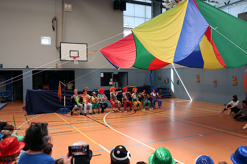 Leider mussten wir dieses Jahr wegen Corona im März unseren Schulzirkus absagen und auf den April 2023 verschieben. Damit unsere Viertklässler aber auch Zirkus-Luft schnuppern dürfen, haben die Lehrerinnen des 4. Jahrgangs zusammen mit Mitarbeiterinnen von „Musifratz“ ab dem 30.05.22 eine Projektwoche organisiert. Jeden Tag probten die Kinder in verschiedenen Kleingruppen. Am Freitag, den 03.06.22, konnten die Kinder dann ihr Können als Clowns, Jongleure, Akrobaten, Raubtiere, Tänzer, Pantominen, Schauspieler und Kampfkünstler bei einer Zirkusvorstellung in der Turnhalle vor den Eltern aufführen. Und der Applaus zeigte, dass das mehr als nur eine Ersatz-Zirkus-Vorstellung war. Danke allen Beteiligten für den tollen Einsatz!