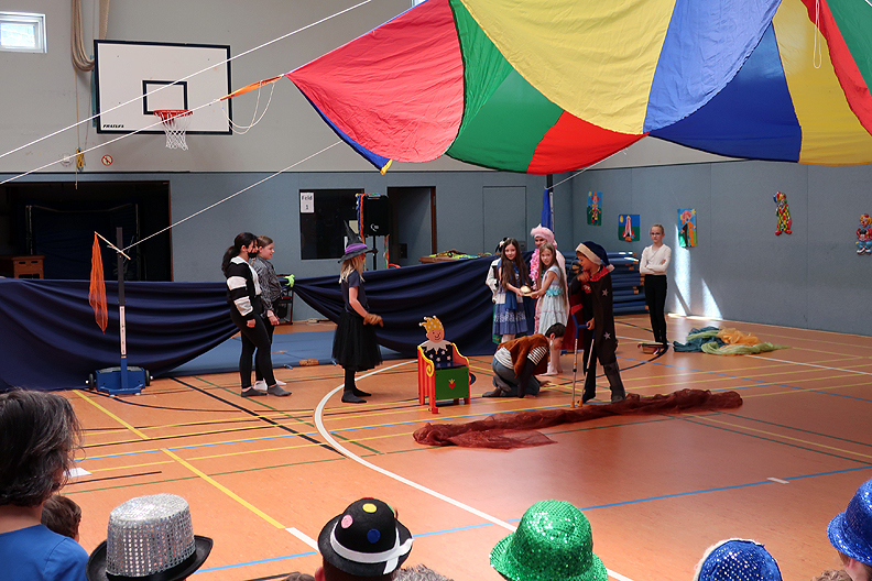 Leider mussten wir dieses Jahr wegen Corona im März unseren Schulzirkus absagen und auf den April 2023 verschieben. Damit unsere Viertklässler aber auch Zirkus-Luft schnuppern dürfen, haben die Lehrerinnen des 4. Jahrgangs zusammen mit Mitarbeiterinnen von „Musifratz“ ab dem 30.05.22 eine Projektwoche organisiert. Jeden Tag probten die Kinder in verschiedenen Kleingruppen. Am Freitag, den 03.06.22, konnten die Kinder dann ihr Können als Clowns, Jongleure, Akrobaten, Raubtiere, Tänzer, Pantominen, Schauspieler und Kampfkünstler bei einer Zirkusvorstellung in der Turnhalle vor den Eltern aufführen. Und der Applaus zeigte, dass das mehr als nur eine Ersatz-Zirkus-Vorstellung war. Danke allen Beteiligten für den tollen Einsatz!