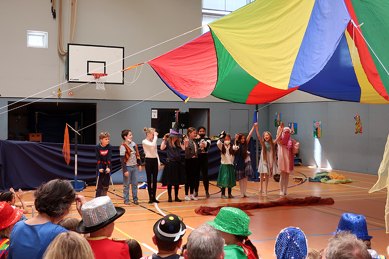Leider mussten wir dieses Jahr wegen Corona im März unseren Schulzirkus absagen und auf den April 2023 verschieben. Damit unsere Viertklässler aber auch Zirkus-Luft schnuppern dürfen, haben die Lehrerinnen des 4. Jahrgangs zusammen mit Mitarbeiterinnen von „Musifratz“ ab dem 30.05.22 eine Projektwoche organisiert. Jeden Tag probten die Kinder in verschiedenen Kleingruppen. Am Freitag, den 03.06.22, konnten die Kinder dann ihr Können als Clowns, Jongleure, Akrobaten, Raubtiere, Tänzer, Pantominen, Schauspieler und Kampfkünstler bei einer Zirkusvorstellung in der Turnhalle vor den Eltern aufführen. Und der Applaus zeigte, dass das mehr als nur eine Ersatz-Zirkus-Vorstellung war. Danke allen Beteiligten für den tollen Einsatz!
