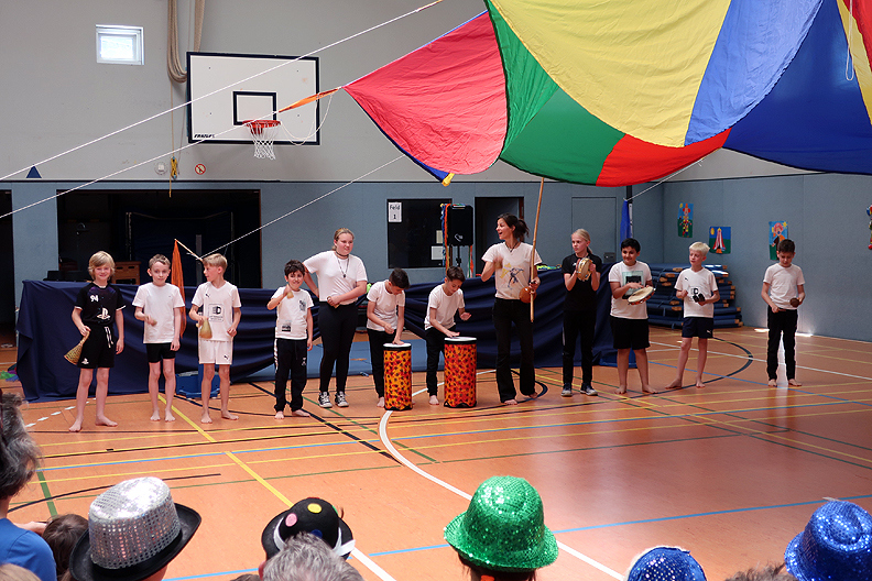 Leider mussten wir dieses Jahr wegen Corona im März unseren Schulzirkus absagen und auf den April 2023 verschieben. Damit unsere Viertklässler aber auch Zirkus-Luft schnuppern dürfen, haben die Lehrerinnen des 4. Jahrgangs zusammen mit Mitarbeiterinnen von „Musifratz“ ab dem 30.05.22 eine Projektwoche organisiert. Jeden Tag probten die Kinder in verschiedenen Kleingruppen. Am Freitag, den 03.06.22, konnten die Kinder dann ihr Können als Clowns, Jongleure, Akrobaten, Raubtiere, Tänzer, Pantominen, Schauspieler und Kampfkünstler bei einer Zirkusvorstellung in der Turnhalle vor den Eltern aufführen. Und der Applaus zeigte, dass das mehr als nur eine Ersatz-Zirkus-Vorstellung war. Danke allen Beteiligten für den tollen Einsatz!