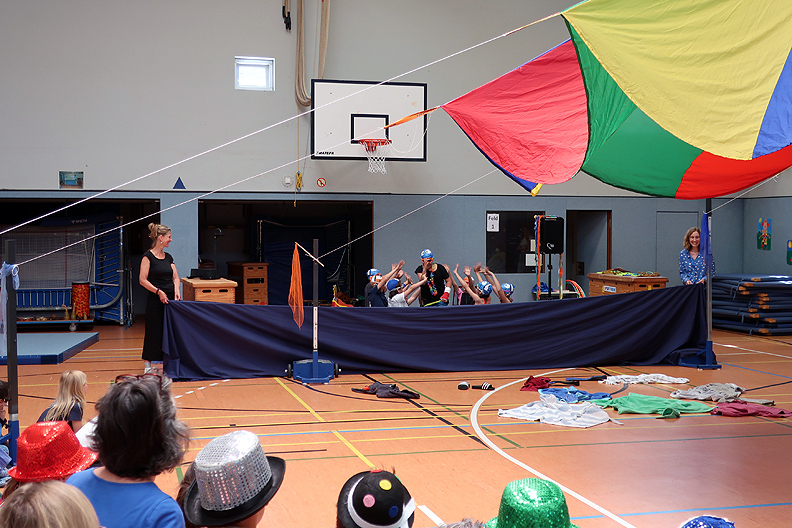 Leider mussten wir dieses Jahr wegen Corona im März unseren Schulzirkus absagen und auf den April 2023 verschieben. Damit unsere Viertklässler aber auch Zirkus-Luft schnuppern dürfen, haben die Lehrerinnen des 4. Jahrgangs zusammen mit Mitarbeiterinnen von „Musifratz“ ab dem 30.05.22 eine Projektwoche organisiert. Jeden Tag probten die Kinder in verschiedenen Kleingruppen. Am Freitag, den 03.06.22, konnten die Kinder dann ihr Können als Clowns, Jongleure, Akrobaten, Raubtiere, Tänzer, Pantominen, Schauspieler und Kampfkünstler bei einer Zirkusvorstellung in der Turnhalle vor den Eltern aufführen. Und der Applaus zeigte, dass das mehr als nur eine Ersatz-Zirkus-Vorstellung war. Danke allen Beteiligten für den tollen Einsatz!