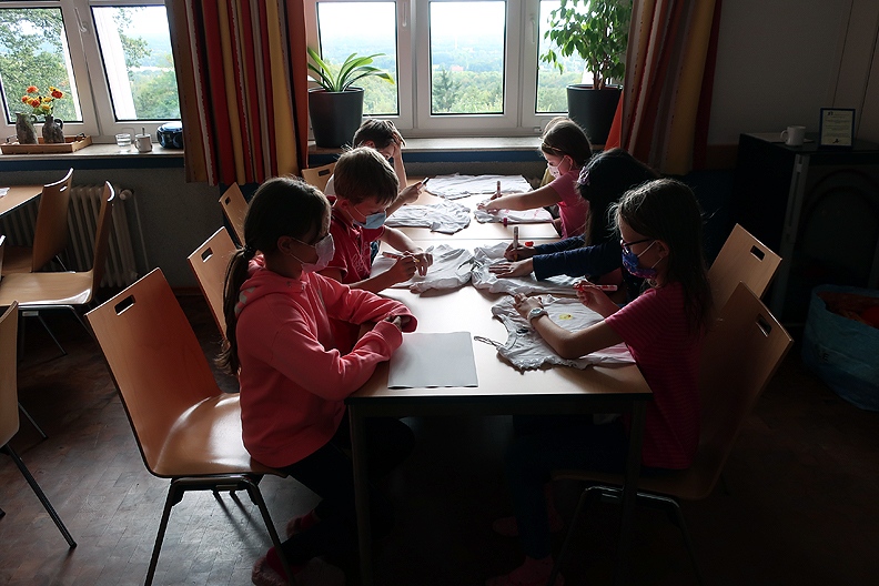 Am Donnerstag konnte jeder ein eigenes T-Shirt bemalen ...