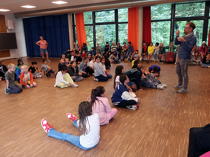 Vom 16. bis 18.08.23 fuhren die Viertklässler nach Haltern in die Bildungsstätte „Gilwell – Sankt Ludger“. Rahmenthema der Klassenfahrt war die Astrid Lindgren Geschichte „Ronja Räubertochter“. Zum Glück regnete es zum Start nur bei der Abfahrt in Münster. In Haltern hatten wir die ganzen Tage gutes Wetter und natürlich eine tolle Stimmung.