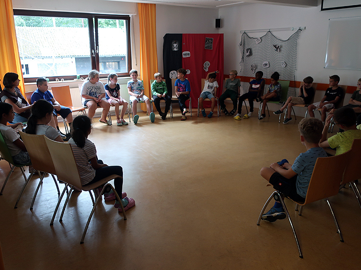 Vom 16. bis 18.08.23 fuhren die Viertklässler nach Haltern in die Bildungsstätte „Gilwell – Sankt Ludger“. Rahmenthema der Klassenfahrt war die Astrid Lindgren Geschichte „Ronja Räubertochter“. Zum Glück regnete es zum Start nur bei der Abfahrt in Münster. In Haltern hatten wir die ganzen Tage gutes Wetter und natürlich eine tolle Stimmung.
