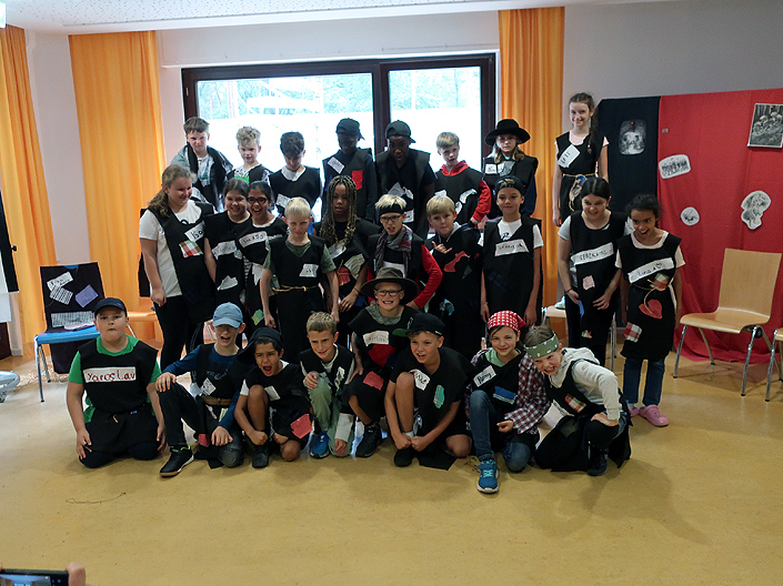 Vom 16. bis 18.08.23 fuhren die Viertklässler nach Haltern in die Bildungsstätte „Gilwell – Sankt Ludger“. Rahmenthema der Klassenfahrt war die Astrid Lindgren Geschichte „Ronja Räubertochter“. Zum Glück regnete es zum Start nur bei der Abfahrt in Münster. In Haltern hatten wir die ganzen Tage gutes Wetter und natürlich eine tolle Stimmung.