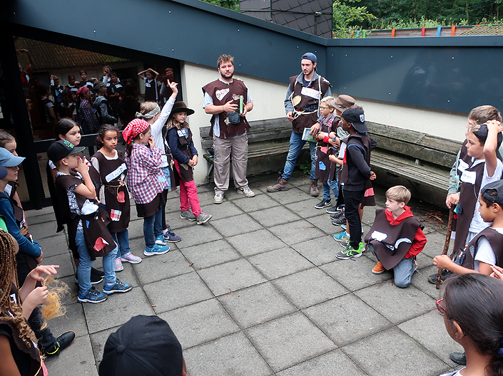 Vom 16. bis 18.08.23 fuhren die Viertklässler nach Haltern in die Bildungsstätte „Gilwell – Sankt Ludger“. Rahmenthema der Klassenfahrt war die Astrid Lindgren Geschichte „Ronja Räubertochter“. Zum Glück regnete es zum Start nur bei der Abfahrt in Münster. In Haltern hatten wir die ganzen Tage gutes Wetter und natürlich eine tolle Stimmung.