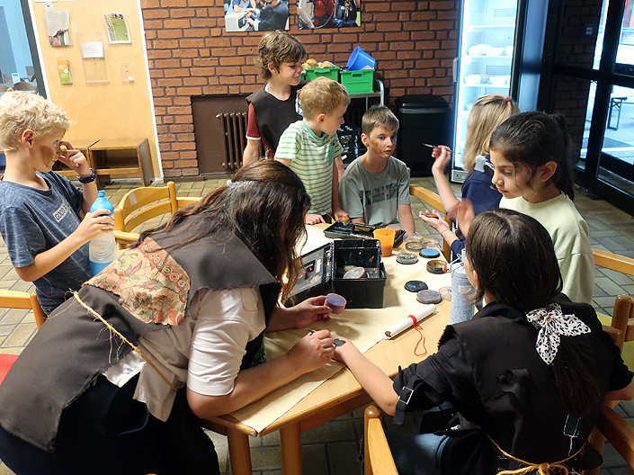 Vom 16. bis 18.08.23 fuhren die Viertklässler nach Haltern in die Bildungsstätte „Gilwell – Sankt Ludger“. Rahmenthema der Klassenfahrt war die Astrid Lindgren Geschichte „Ronja Räubertochter“. Zum Glück regnete es zum Start nur bei der Abfahrt in Münster. In Haltern hatten wir die ganzen Tage gutes Wetter und natürlich eine tolle Stimmung.