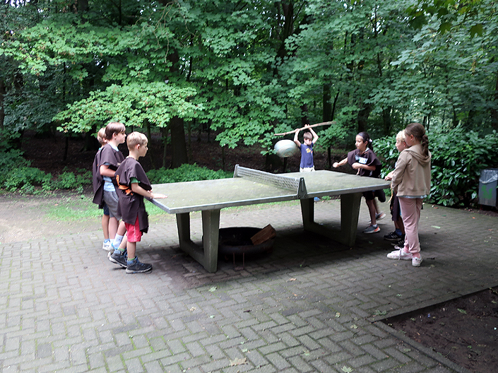 Vom 16. bis 18.08.23 fuhren die Viertklässler nach Haltern in die Bildungsstätte „Gilwell – Sankt Ludger“. Rahmenthema der Klassenfahrt war die Astrid Lindgren Geschichte „Ronja Räubertochter“. Zum Glück regnete es zum Start nur bei der Abfahrt in Münster. In Haltern hatten wir die ganzen Tage gutes Wetter und natürlich eine tolle Stimmung.