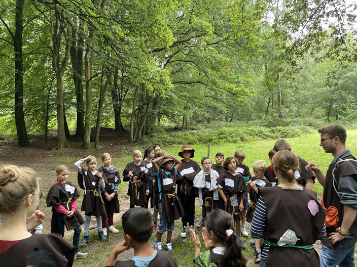 Vom 16. bis 18.08.23 fuhren die Viertklässler nach Haltern in die Bildungsstätte „Gilwell – Sankt Ludger“. Rahmenthema der Klassenfahrt war die Astrid Lindgren Geschichte „Ronja Räubertochter“. Zum Glück regnete es zum Start nur bei der Abfahrt in Münster. In Haltern hatten wir die ganzen Tage gutes Wetter und natürlich eine tolle Stimmung.