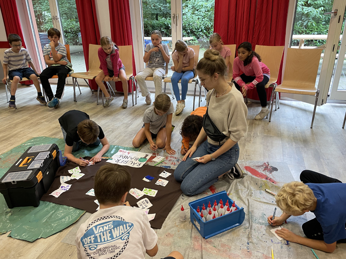 Vom 16. bis 18.08.23 fuhren die Viertklässler nach Haltern in die Bildungsstätte „Gilwell – Sankt Ludger“. Rahmenthema der Klassenfahrt war die Astrid Lindgren Geschichte „Ronja Räubertochter“. Zum Glück regnete es zum Start nur bei der Abfahrt in Münster. In Haltern hatten wir die ganzen Tage gutes Wetter und natürlich eine tolle Stimmung.