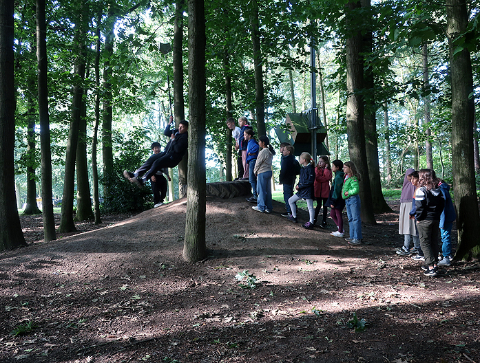 Nach dem Mittagessen ging es dann zum Aussichtsturm am Mergelberg, ganz schön hoch mit seinen 168 Stufen. Schön war dann der Rückweg durch den Wald mit interessanten Wald-Lehr-Stationen und einem ersten Vorgucker auf den Niedrigseilgarten.