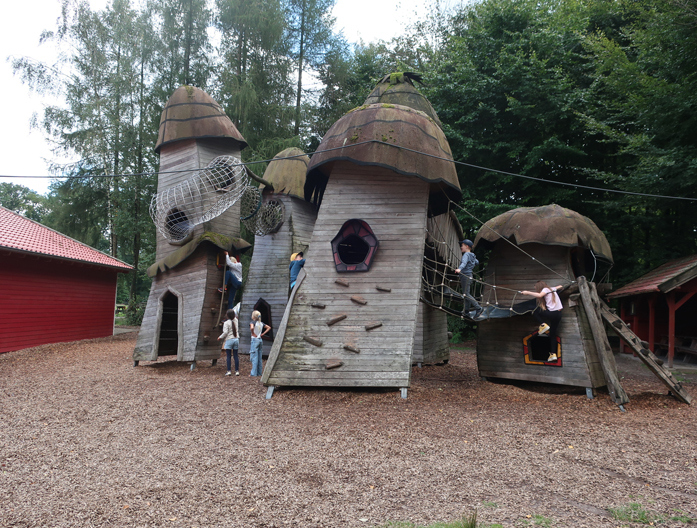 Nach dem Mittagessen ging es dann zum Aussichtsturm am Mergelberg, ganz schön hoch mit seinen 168 Stufen. Schön war dann der Rückweg durch den Wald mit interessanten Wald-Lehr-Stationen und einem ersten Vorgucker auf den Niedrigseilgarten.