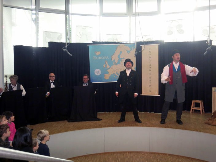 Unterlegt wird das ganze mit passenden klassischen Musikstücken – vom Donauwalzer bis hin zur ‚Ode an die Freude‘. Die Kinder waren begeistert. Ein bisschen lässt sich die Geschichte unten in der Fotogalerei nachvollziehen. Viel Spaß!