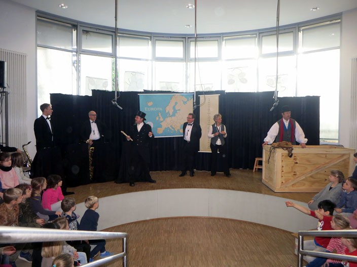 Unterlegt wird das ganze mit passenden klassischen Musikstücken – vom Donauwalzer bis hin zur ‚Ode an die Freude‘. Die Kinder waren begeistert. Ein bisschen lässt sich die Geschichte unten in der Fotogalerei nachvollziehen. Viel Spaß!
