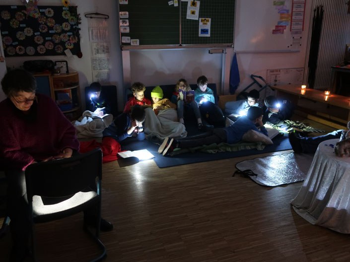 Kinder brachten Kissen, Kuscheltiere, Lese-Lampen und natürlich ein eigenes Buch mit. Zuerst gabe es eine Lese-Zeit oder Vorlese-Zeit in den Klassen. Als erstes kamen dann die Klassen 1 und 2 ins Forum. Dort wurden unsere Lese-Woche-Lieder gesungen wie „Lesen heißt auf Wolken liegen“. Zudem gab es auch ein eingesprochenes Vorlesebuch zum Hören und Sehen. Danach kamen die Kinder Klassen 3 und 4 ins Forum. Nach der Forumszeit gab es noch ein nettes Zusammensein in den Klassen mit den Eltern.