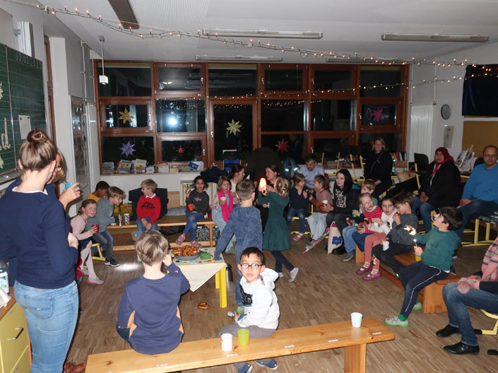 Kinder brachten Kissen, Kuscheltiere, Lese-Lampen und natürlich ein eigenes Buch mit. Zuerst gabe es eine Lese-Zeit oder Vorlese-Zeit in den Klassen. Als erstes kamen dann die Klassen 1 und 2 ins Forum. Dort wurden unsere Lese-Woche-Lieder gesungen wie „Lesen heißt auf Wolken liegen“. Zudem gab es auch ein eingesprochenes Vorlesebuch zum Hören und Sehen. Danach kamen die Kinder Klassen 3 und 4 ins Forum. Nach der Forumszeit gab es noch ein nettes Zusammensein in den Klassen mit den Eltern.