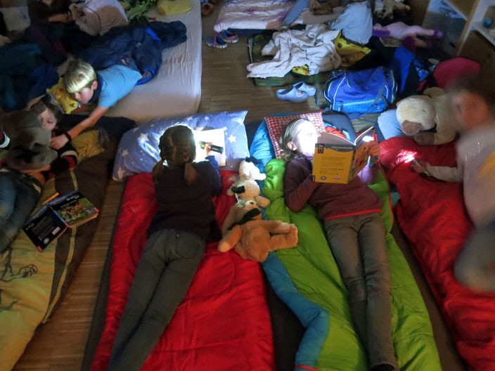 Donnerstag, den 06.02.2020, am Ende unserer Lesewoche kamen alle Kinder um 19:30 Uhr wieder in die Schule. Denn dann startet unsere Lesenacht.