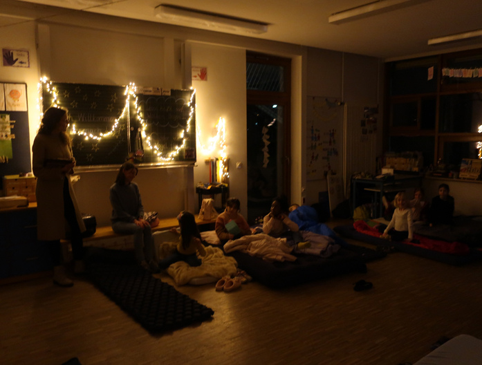 Lesenacht 2024 22. Februar 2024 Höhepunkt der Bücherwoche ist immer unsere Lesenacht. Dieses Jahr am Donnerstag, den 22.02.24. Da schlafen alle Kinder und Lehrkräfte in der Schule. Die Galerie unten zeigt den genauen Ablauf. Viel Spaß! ... auch mit passender Beleuchtung... Bild 10 von 42