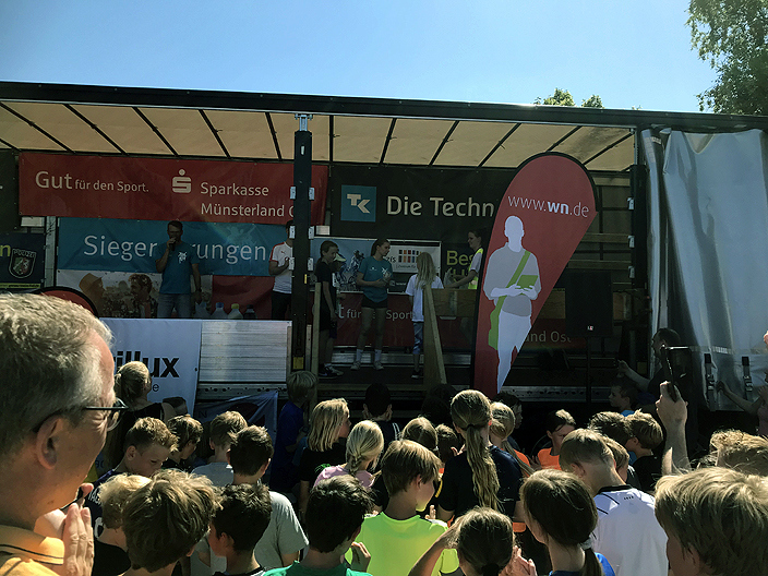 Bei den U10 Mädchen über 2,5 km liefen  8 Mosaik-Kinder in die Top 10, Lenja belegte sogar den 1. und Clara den 2. Platz. Bei den U12 Jungen erliefen über 2,5-km Jakob und Hanno den 2. und 3. Platz. Und zudem wurden wir als Grundschule gleich zweimal geehrt mit jeweils 200 €: Wir stellten als Grundschule die meisten Kinder und brachten zudem die meisten Kindern einer Schule ins Ziel.