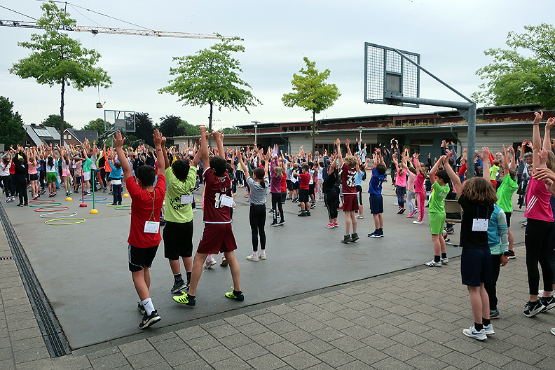 Zuerst haben die Kinder in den Klassen ihre Laufkarten gebastelt. Dann starteten die Kinder zu einer Runde um die Schule zum Aufwärmen. Mit Musik ging es dann weiter beim Dehnen auf dem Schulhof. Danach konnten die Kinder fast 30 Stationen auf dem Schulhof, in der Turnhallle und auf dem Sportgelände besuchen. Gut, dass das Wetter gehalten hat. So war das Ganze eine runde, bewegte Aktion! Und die Kinder bekamen am Schluss eine Urkunde für ihre Anstrengungen!