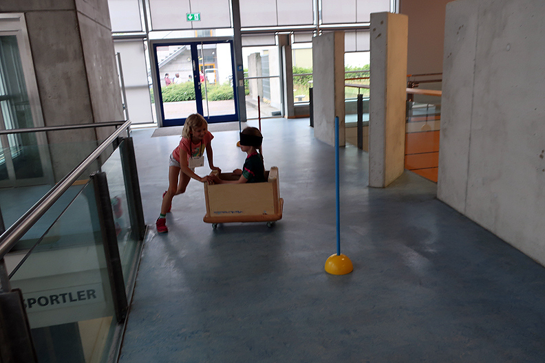 In der Turnhalle ist bereits oben die erste Station ....