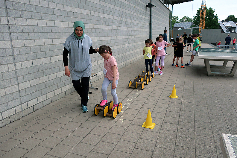 Zuerst haben die Kinder in den Klassen ihre Laufkarten gebastelt. Dann starteten die Kinder zu einer Runde um die Schule zum Aufwärmen. Mit Musik ging es dann weiter beim Dehnen auf dem Schulhof. Danach konnten die Kinder fast 30 Stationen auf dem Schulhof, in der Turnhallle und auf dem Sportgelände besuchen. Gut, dass das Wetter gehalten hat. So war das Ganze eine runde, bewegte Aktion! Und die Kinder bekamen am Schluss eine Urkunde für ihre Anstrengungen!
