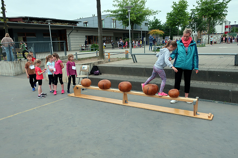 Zuerst haben die Kinder in den Klassen ihre Laufkarten gebastelt. Dann starteten die Kinder zu einer Runde um die Schule zum Aufwärmen. Mit Musik ging es dann weiter beim Dehnen auf dem Schulhof. Danach konnten die Kinder fast 30 Stationen auf dem Schulhof, in der Turnhallle und auf dem Sportgelände besuchen. Gut, dass das Wetter gehalten hat. So war das Ganze eine runde, bewegte Aktion! Und die Kinder bekamen am Schluss eine Urkunde für ihre Anstrengungen!