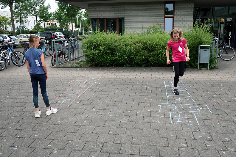 Zuerst haben die Kinder in den Klassen ihre Laufkarten gebastelt. Dann starteten die Kinder zu einer Runde um die Schule zum Aufwärmen. Mit Musik ging es dann weiter beim Dehnen auf dem Schulhof. Danach konnten die Kinder fast 30 Stationen auf dem Schulhof, in der Turnhallle und auf dem Sportgelände besuchen. Gut, dass das Wetter gehalten hat. So war das Ganze eine runde, bewegte Aktion! Und die Kinder bekamen am Schluss eine Urkunde für ihre Anstrengungen!