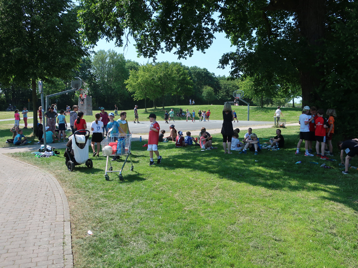 Wegen des Zirkusprojektes haben wir dieses Jahr – Freitag, der 09.06.23 – nur ein ‚kleines Trimmfest veranstaltet. Trotzdem hatten sich viele freiwillige Eltern-HelferInnen gemeldet, und dazu kamen dieses Jahr noch 11 Schüler-SporthelferInnen aus dem Stein-Gymnasium dazu. Super, herzlichen Dank für die Unterstützung!