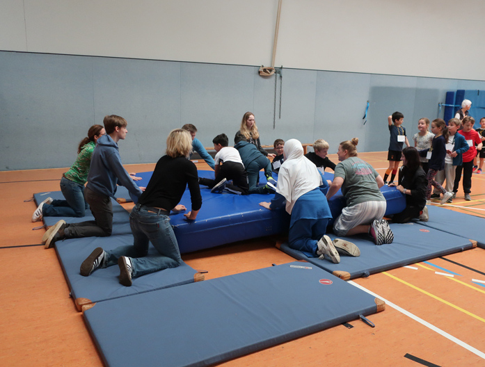 Unser Trimmfest hatte am Freitag, den 21.06.24, einen schlechten Start: Regen, Regen, Regen. Daher mussten wir leider alle Übungen auf dem Sportgelände absagen. Zum Glück hörte der Regen rechtzeitig auf, so dass die Kinder die Bewegungsstationen auf dem Schulhof und in der Turnhalle bewältigen konnten – die Fotogallerie verrät mehr. Die Mosaik-Eltern waren dabei wieder eine große Unterstützung. Viele Eltern waren als HelferInnen an den Stationen oder hatten ihren Kindern etwas Leckeres, Gesundes für das Buffet mitgegeben. Großen Dank für die Unterstützung!
