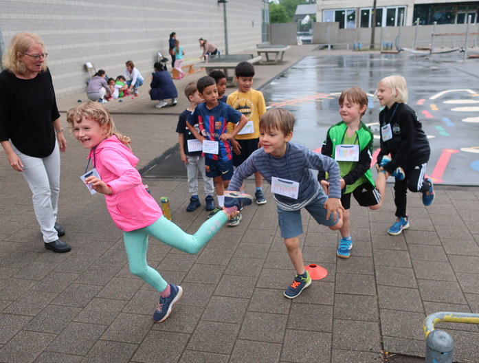 Unser Trimmfest hatte am Freitag, den 21.06.24, einen schlechten Start: Regen, Regen, Regen. Daher mussten wir leider alle Übungen auf dem Sportgelände absagen. Zum Glück hörte der Regen rechtzeitig auf, so dass die Kinder die Bewegungsstationen auf dem Schulhof und in der Turnhalle bewältigen konnten – die Fotogallerie verrät mehr. Die Mosaik-Eltern waren dabei wieder eine große Unterstützung. Viele Eltern waren als HelferInnen an den Stationen oder hatten ihren Kindern etwas Leckeres, Gesundes für das Buffet mitgegeben. Großen Dank für die Unterstützung!
