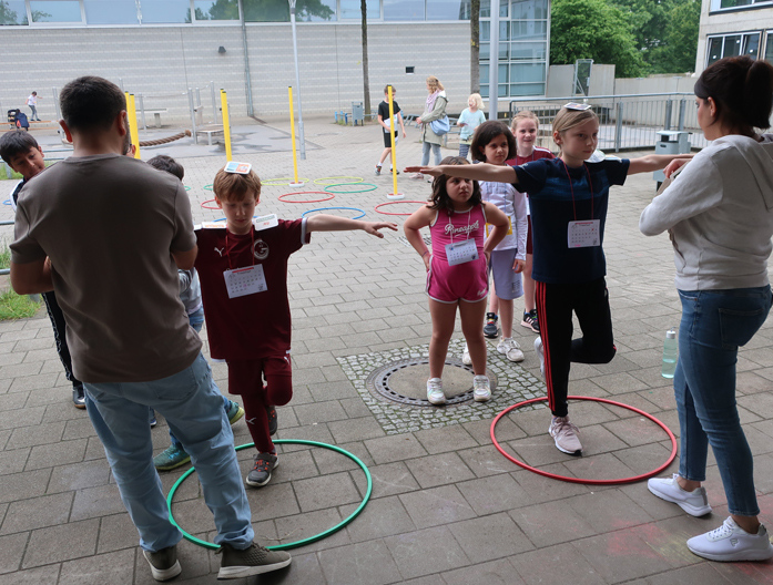 Unser Trimmfest hatte am Freitag, den 21.06.24, einen schlechten Start: Regen, Regen, Regen. Daher mussten wir leider alle Übungen auf dem Sportgelände absagen. Zum Glück hörte der Regen rechtzeitig auf, so dass die Kinder die Bewegungsstationen auf dem Schulhof und in der Turnhalle bewältigen konnten – die Fotogallerie verrät mehr. Die Mosaik-Eltern waren dabei wieder eine große Unterstützung. Viele Eltern waren als HelferInnen an den Stationen oder hatten ihren Kindern etwas Leckeres, Gesundes für das Buffet mitgegeben. Großen Dank für die Unterstützung!