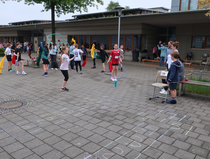 Unser Trimmfest hatte am Freitag, den 21.06.24, einen schlechten Start: Regen, Regen, Regen. Daher mussten wir leider alle Übungen auf dem Sportgelände absagen. Zum Glück hörte der Regen rechtzeitig auf, so dass die Kinder die Bewegungsstationen auf dem Schulhof und in der Turnhalle bewältigen konnten – die Fotogallerie verrät mehr. Die Mosaik-Eltern waren dabei wieder eine große Unterstützung. Viele Eltern waren als HelferInnen an den Stationen oder hatten ihren Kindern etwas Leckeres, Gesundes für das Buffet mitgegeben. Großen Dank für die Unterstützung!
